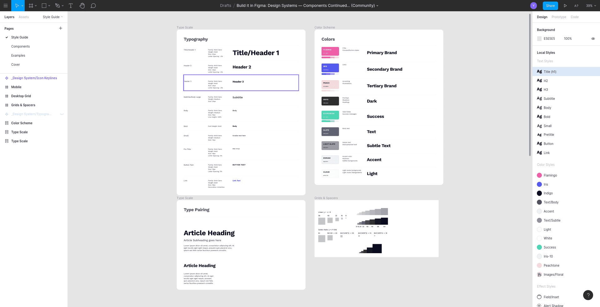 In this guide, I am going to be using a pre-made design system template from the Figma community click here to view. The image below is the style guide for our simple design system that we will be implementing in code later.